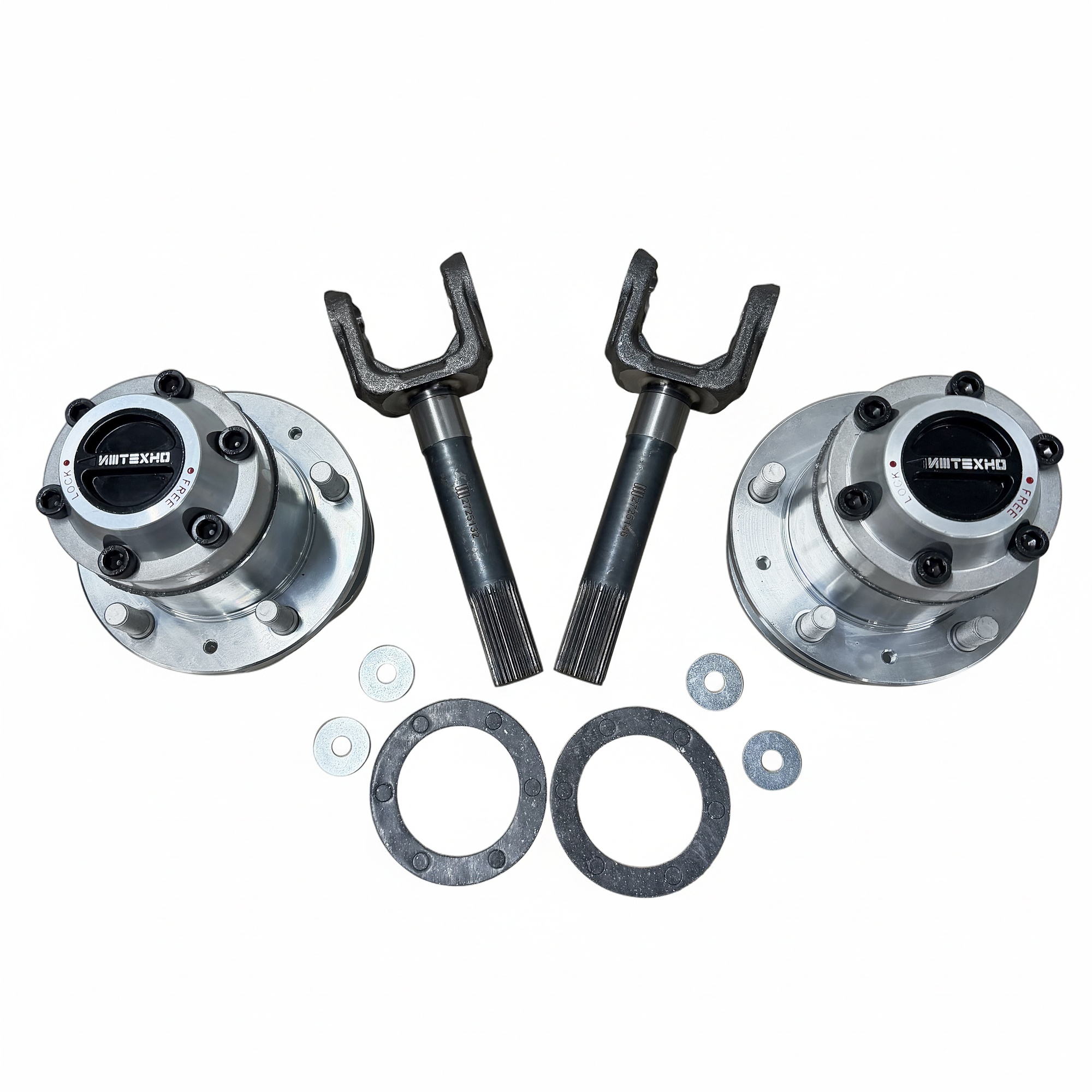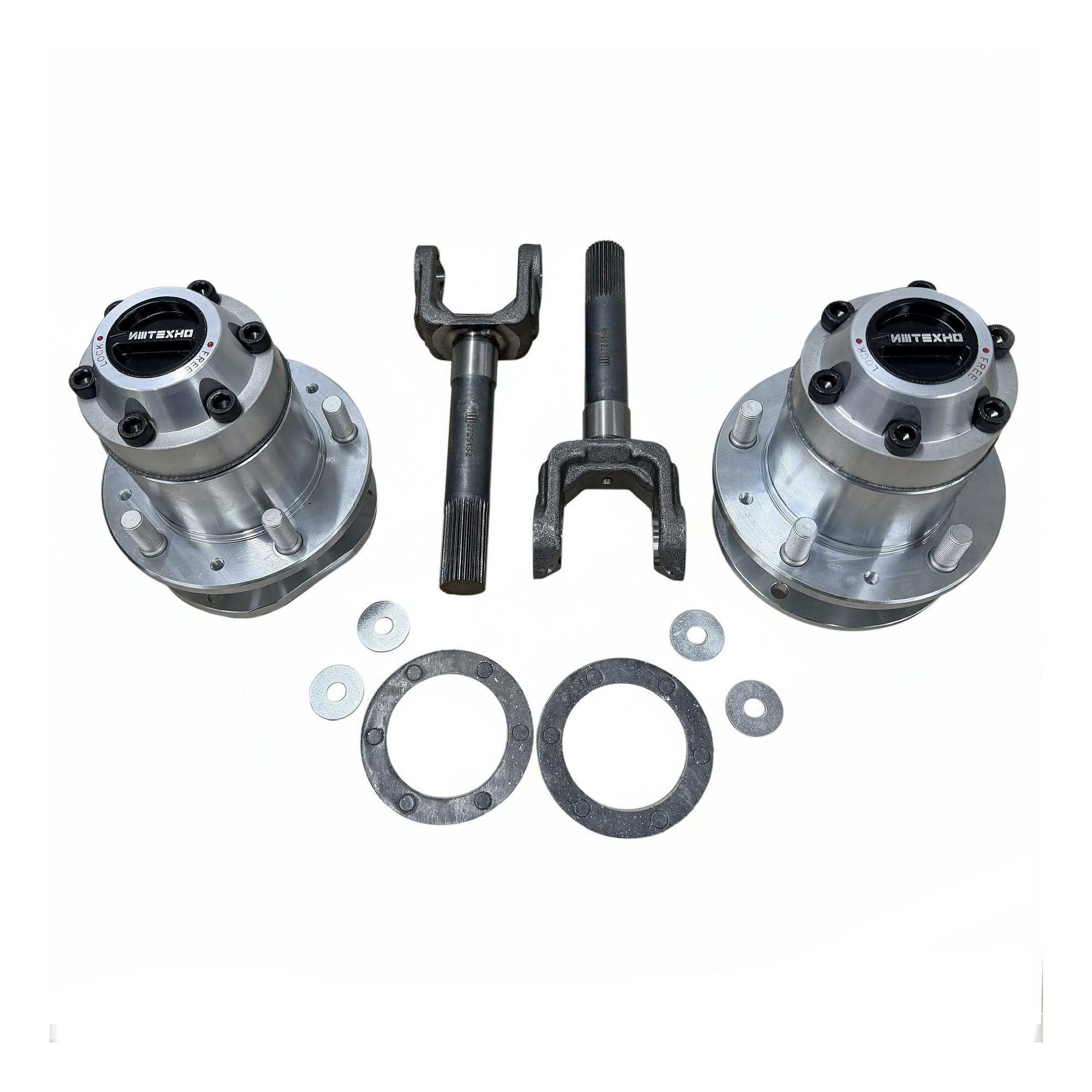 Все в сборе. В комплект уже включены ступицы, цапфы, хабы, вилки шарнирные.