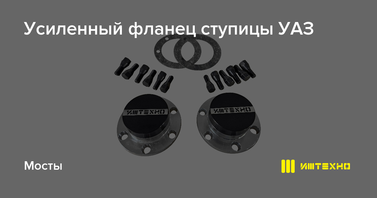 Усиленный фланец ступицы УАЗ в комплекте с крепежом ИЖ-ТЕХНО. Превосходит по своим прочностным характеристикам стандартный фланец ОАО УАЗ 31512307091.